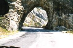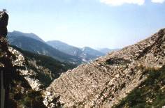 In der Mitte rechts erkennt man die Felsdurchführung, die im oberen Bild dargestellt ist. Am Col des Leques sind wir 1146m ü. n.N. Die anschließende Fahrt ins Tal war nicht weniger anstrengend. Die Fahrt über die N 85 ist ein Erlebnis erster Güte. Schade das unterwegs in den Bergen keine Parkmöglichkeiten gibt. Die herrliche Landschaft kann wohl nur der Mitreisende genießen. Dem Fahrer wird volle Konzentration abverlangt. |